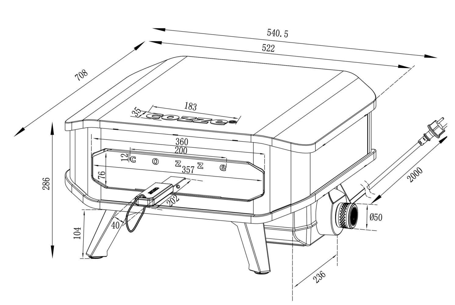 | Ausstattung: | Digitales LED Display Wärmemanagement, inkl. Hitzeschild, mit massiven LFGB-geprüften Cordierit Pizzastein |