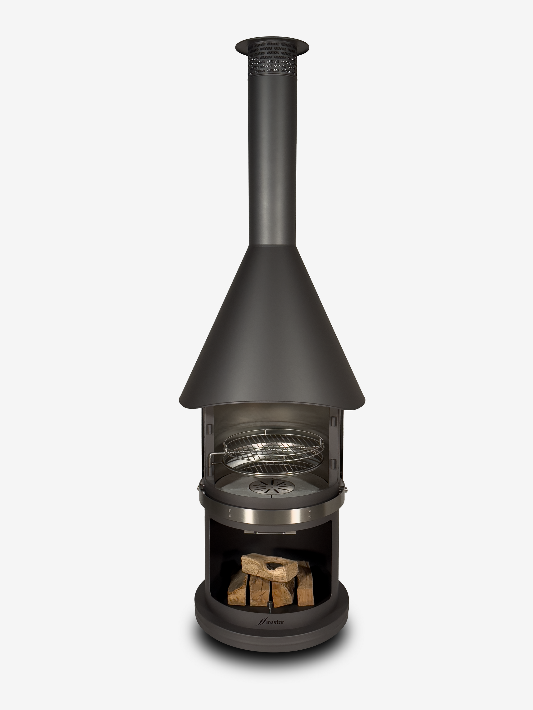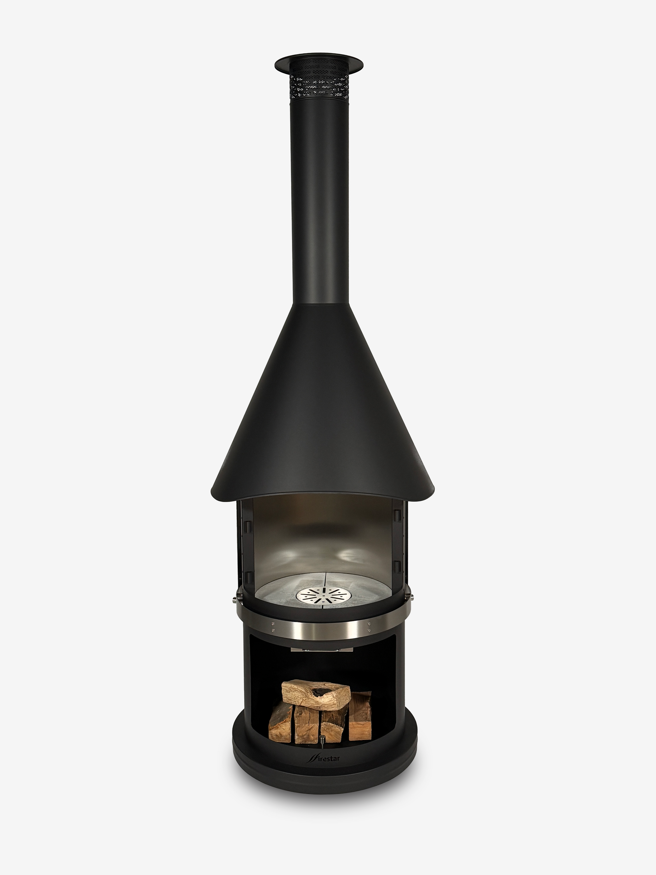 Der Boden des Brennraums besteht aus feuerfestem Spezialbeton, der Temperaturen bis zu 1.000°C standhält. Im Vergleich zu anderen Materialien wie Schamotte bietet dieser Beton eine besonders hohe Widerstandskraft gegen Hitze, Feuchtigkeit und Frost. Damit ist der Firestar DN 700 Swing die ideale Wahl für den ganzjährigen Outdoor-Einsatz.