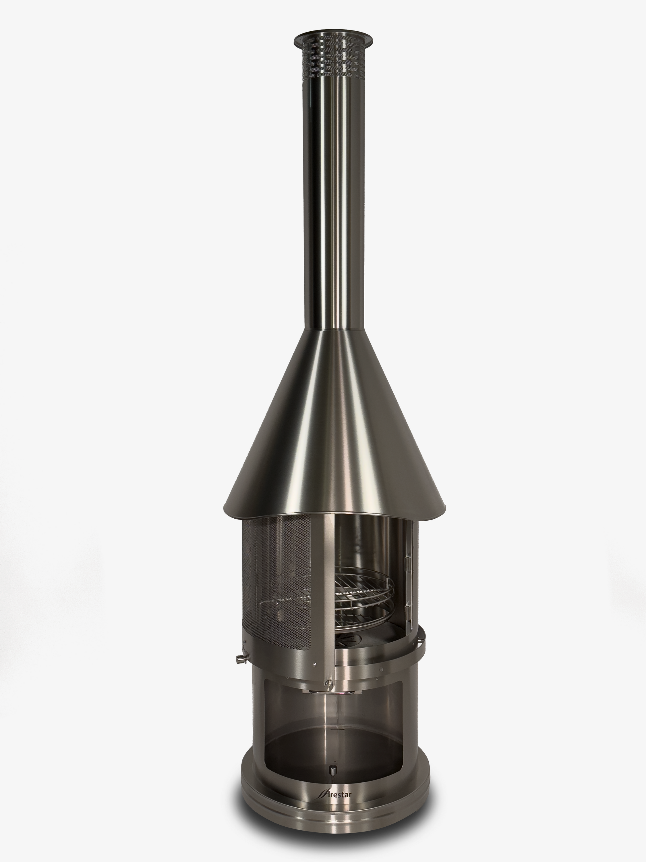 Die neu konzipierte Regenhaube schützt den Kamin nicht nur effektiv vor Regen und Feuchtigkeit, sondern verbessert gleichzeitig die Ableitung von Rauch. Ein integriertes Edelstahlgewebe reduziert zusätzlich austretende Funken – ein Plus für Sicherheit und Sauberkeit. Das Gehäuse aus hochwertigem Edelstahl ist besonders widerstandsfähig und trotzt Wind und Wetter – ein Kamin, auf den Sie sich das ganze Jahr über verlassen können.
