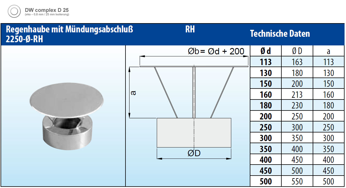1x Mündungsabschluss oder Regenhaube (entsprechend Auswahl)