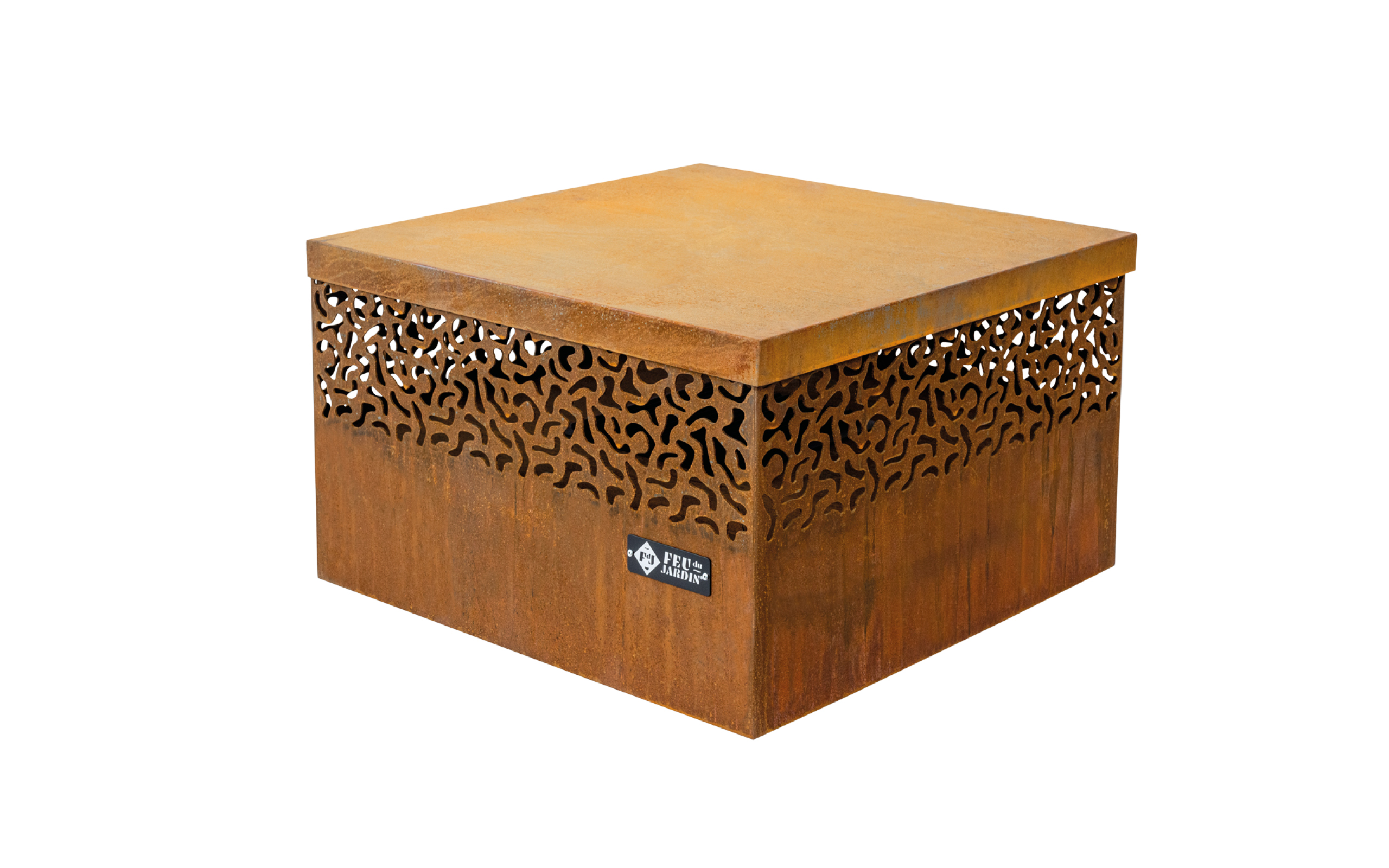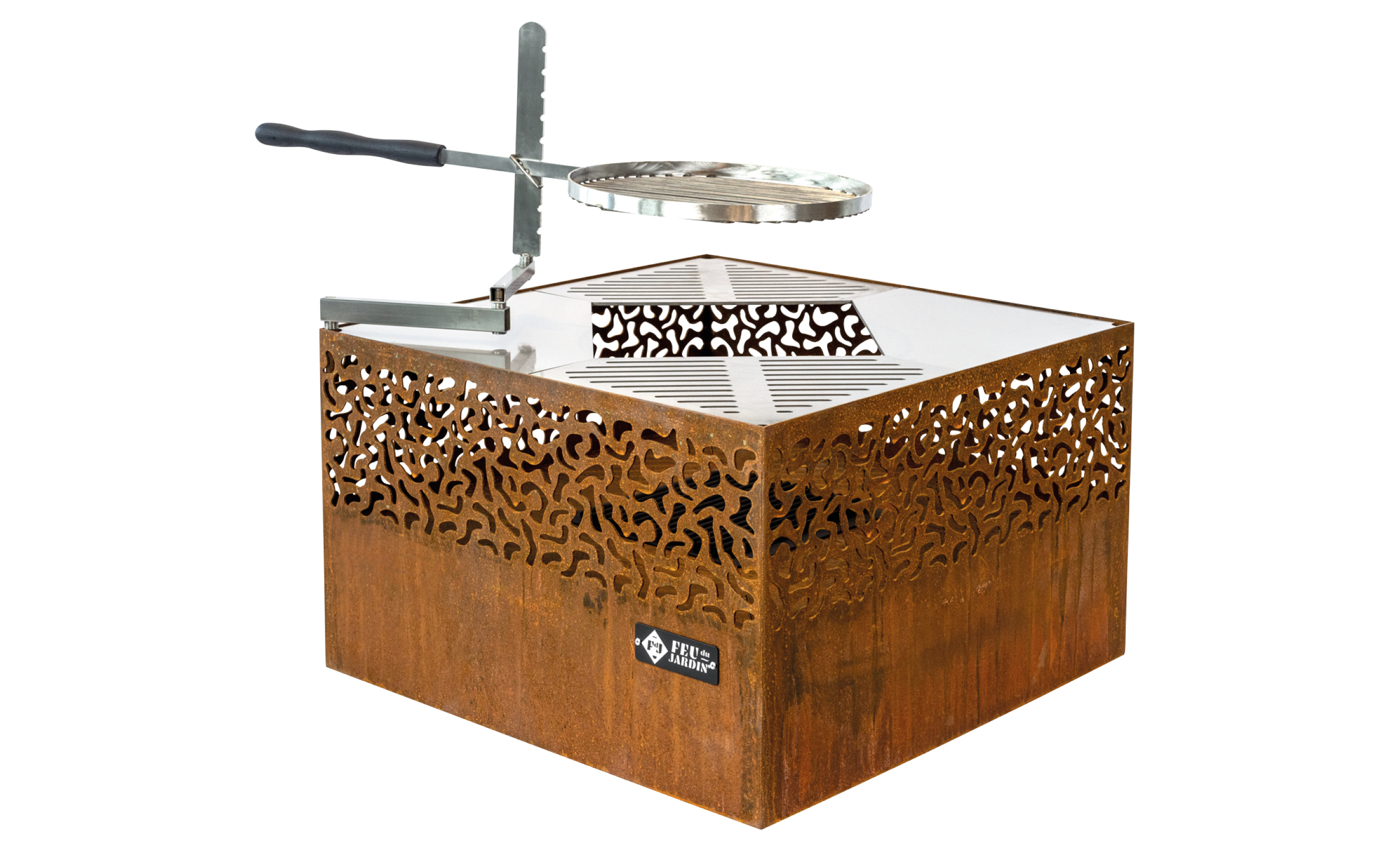 Der Carre 750 in trendiger Rostoptik ist eine Feuerschale, die mit ihrem wunderschönen Muster jeden Abend zu einem einzigartigen Erlebnis macht. Seine Kombination aus Feuerstelle und Grillfunktion macht ihn besonders beliebt. Die massiven und vierteiligen Edelstahlplatten überzeugen durch Qualität, sodass der Carre 750 jedem Grill Konkurrenz macht. Als zusätzliches Plus verfügt die Feuerschale über eine passende metallische Abdeckung, die vor Nässe, Staub schützt und das rustikale Gesamtbild bewahrt.