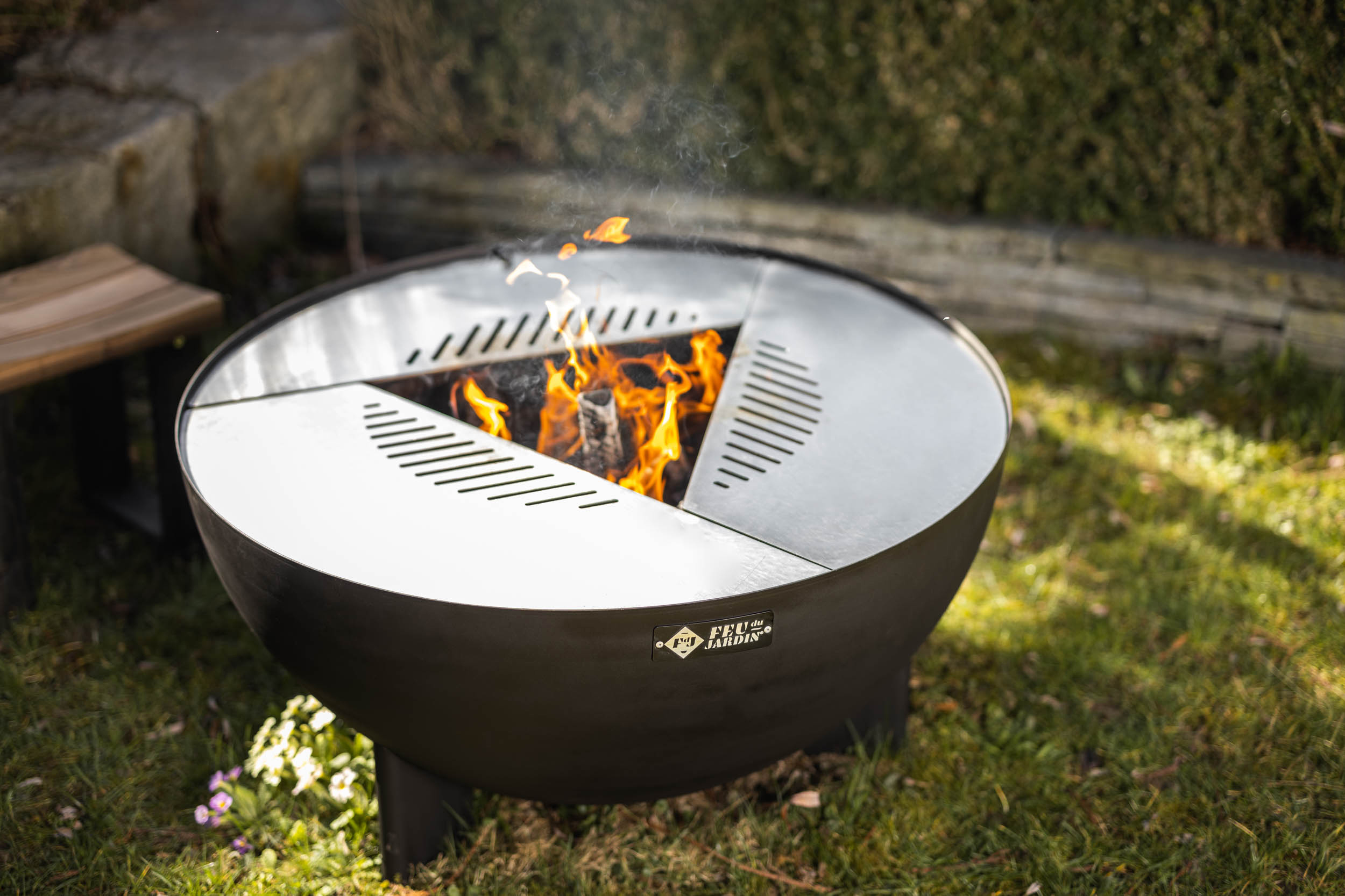 Mit dem Modell "Feu du Jardin TRIA" erwerben Sie die effiziente Feuerschale, welche Sie mit Holz und mit Holzkohle entflammen können.