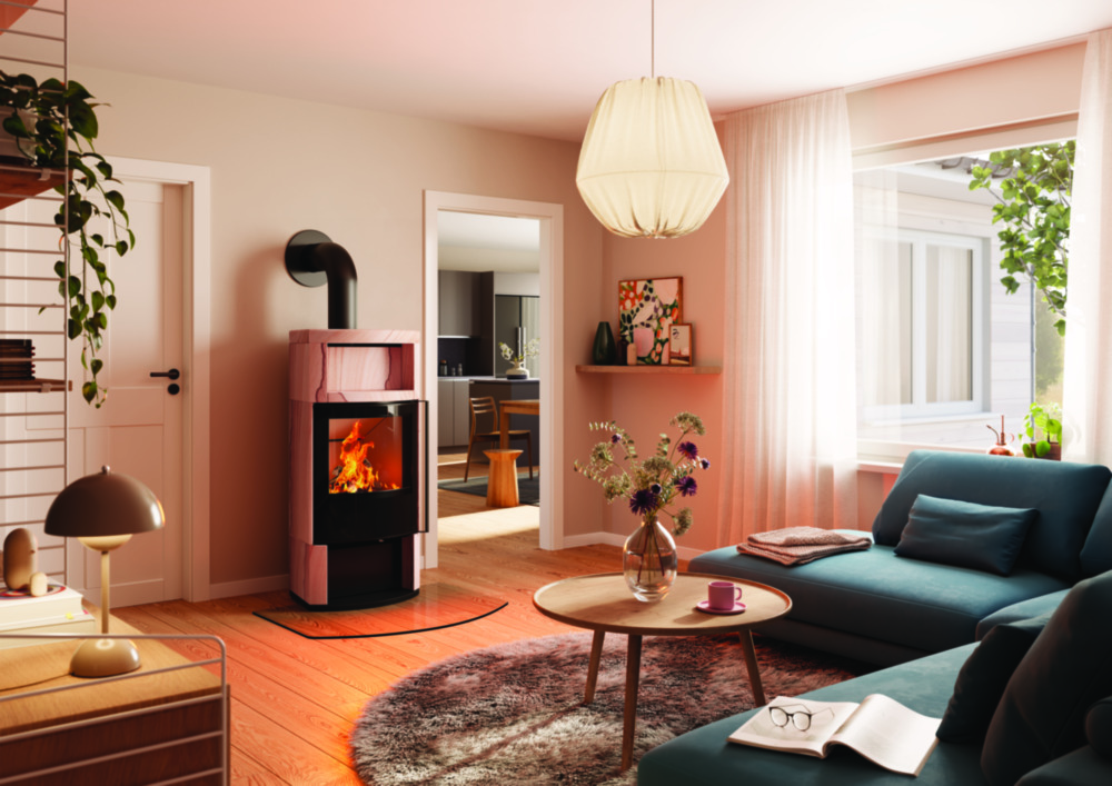 Die massive Steinverkleidung des Moro erfüllt nicht nur eine ästhetische Funktion, sondern ist gleichzeitig ein effizienter Wärmespeicher. Sie sorgt dafür, dass die erzeugte Wärme des Feuers gespeichert und anschließend sanft und gleichmäßig an den Raum abgegeben wird. Dies schafft über einen längeren Zeitraum hinweg ein behagliches Raumklima.
