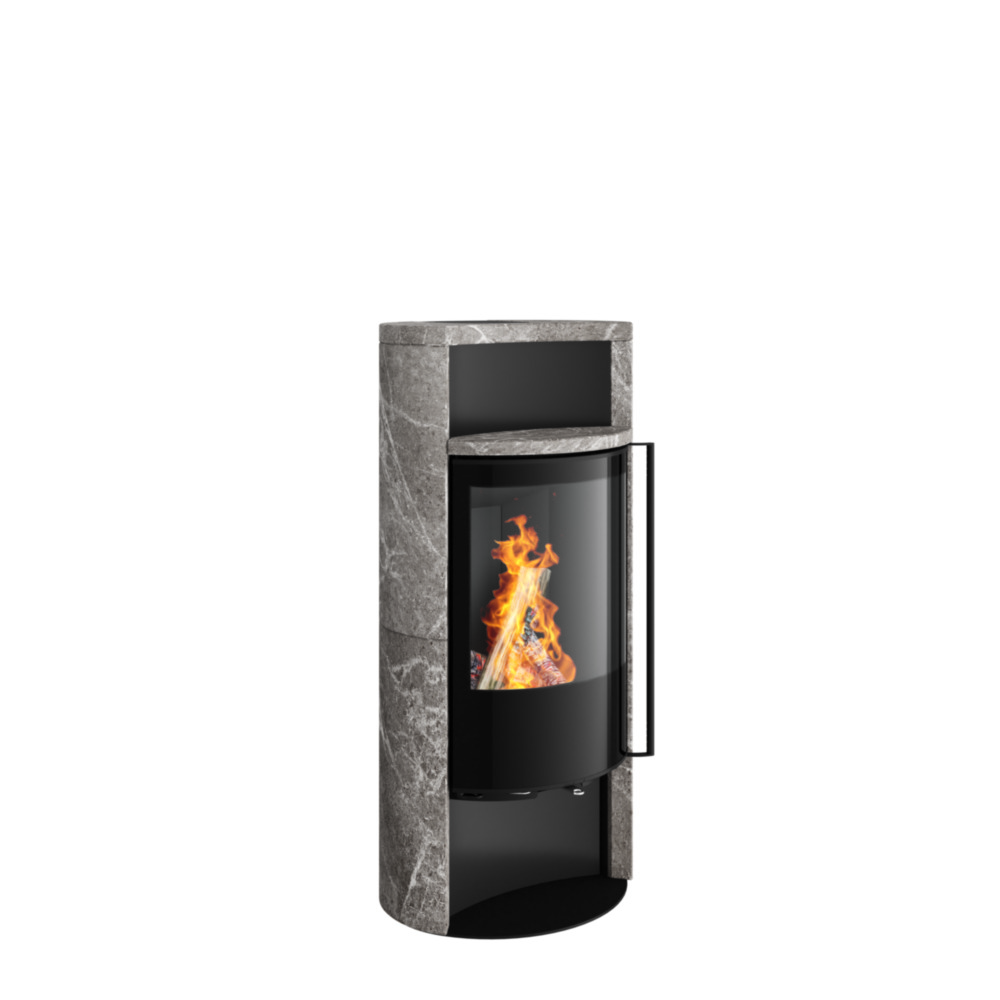 Die Steinverkleidung speichert die erzeugte Wärme des Feuers und gibt sie langsam und gleichmäßig an die Umgebung ab. Die ovale Form des Kaminofens fügt sich elegant in jeden Raum ein, während ein integriertes Warmhaltefach und ein Holzfach die Funktionalität des Sino City unterstreichen.
